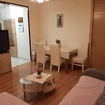Apartment Mia appartementen van 67 m^2 liggen 1 km verwijderd van FKK en omvatten een patio en een eethoek. Een van de hoogtepunten van het appartement is een zonneterras, waar gasten kunnen genieten van het uitzicht op de tuin.